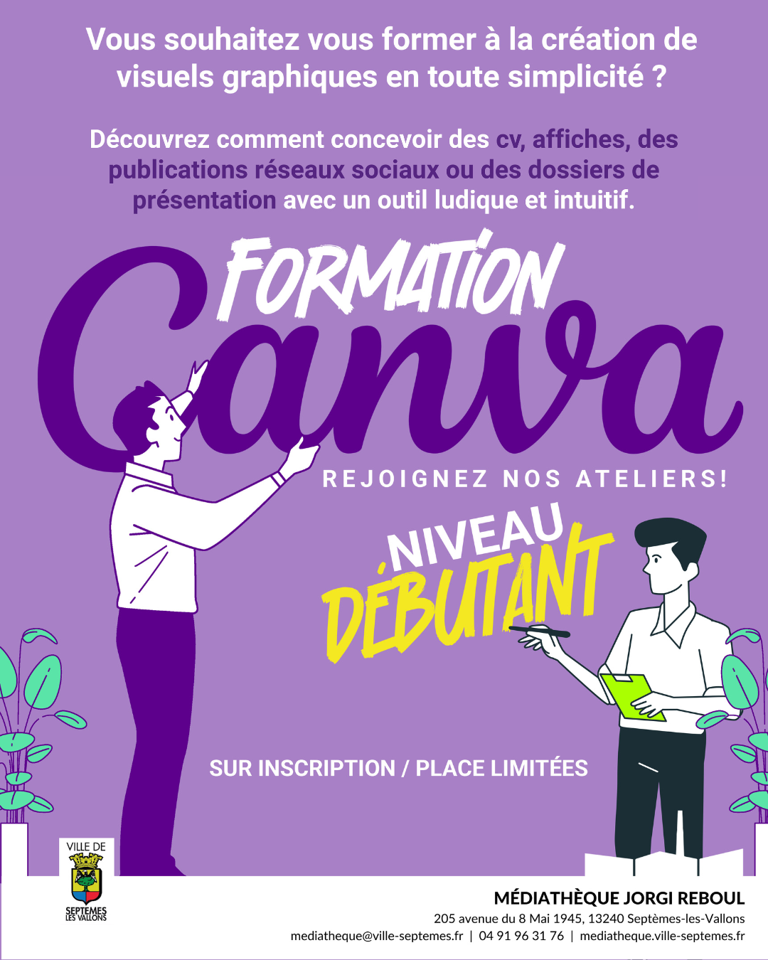 Venez découvrir toutes les possibilités créatives de Canva, outil de design graphique 100% gratuit ! Connaître les bases de l'utilisation de Canva est nécessaire pour participer à certains ateliers de la Fablathèque (flocage, sublimation, gravure laser...) : n'hésitez plus, inscrivez-vous...