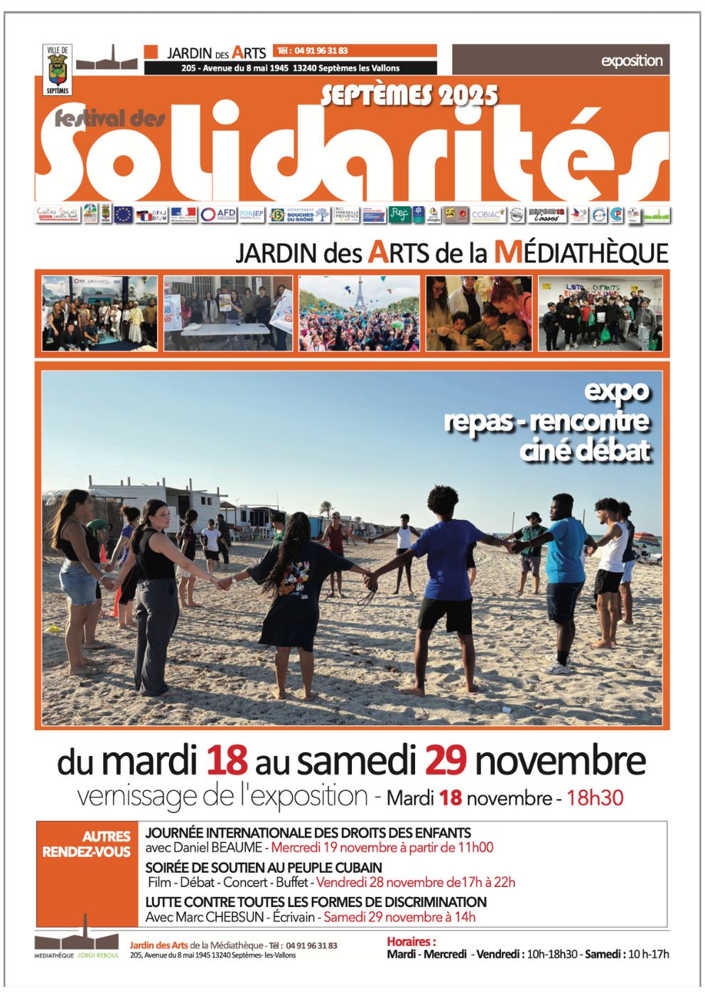 Festival des Solidarités Festival des Solidarités Prochaine session Du mardi 18 novembre 2025 au samedi 29 novembre 2025 Ical Condition d'accès gratuit Public Tout public Lieu MEDIATHEQUE JORGI REBOUL Description Du mardi 18 au samedi 29 novembre Voir le détail de l'événement